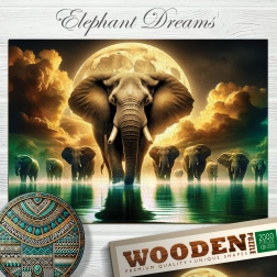 Duik in het plezier met de WOODEN CITY houten puzzel Olifantendromen. Elk stukje is niet alleen uniek van vorm, veel stukjes hebben ook de vorm van dieren, wat de esthetische indruk versterkt. Het resultaat is een afbeelding die je geduld en vaardigheden op de proef stelt.