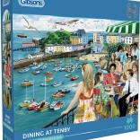 Verrijk je vrije tijd met de schilderachtige puzzel van het merk Gibsons. Het thema 'Diner in Tenby' neemt je mee naar een klein levendig kustplaatsje vol kleur. Deze puzzel is ideaal voor alle liefhebbers van gedetailleerde illustraties en uitdagende puzzels.