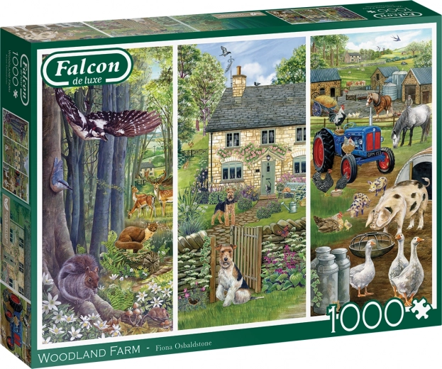 Leg de Farma Woodland-puzzel met 1000 stukjes van FALCON, afmeting 68 x 49 cm, voor ultieme ontspanning.