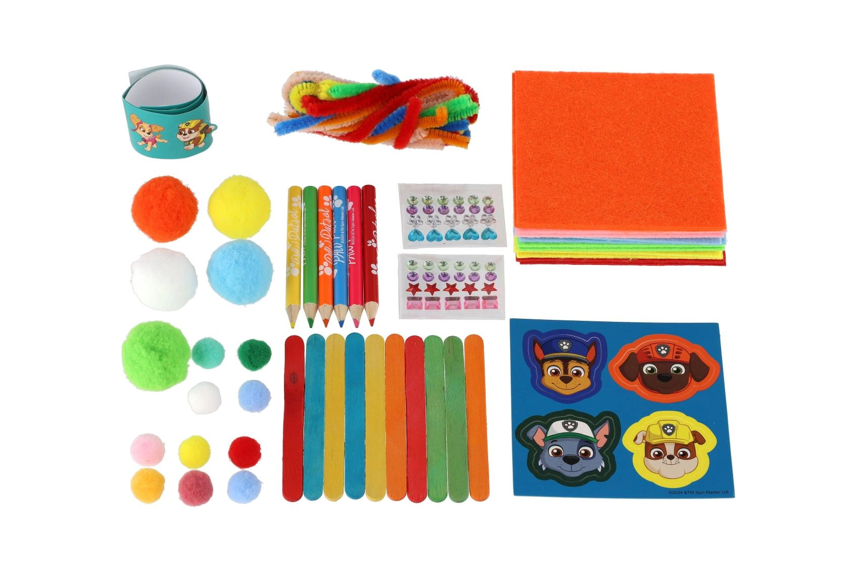 - Rijke uitrusting – pompons, pluizige pijpenragers, foamvormen, stokjes, kleurpotloden en PAW PATROL-stickers.