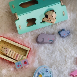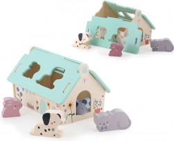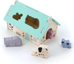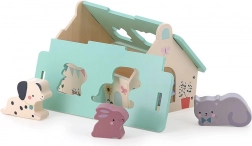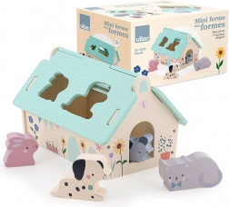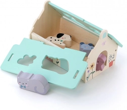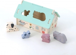 Dit prachtig afgewerkte houten huisje in zachte kleuren is ontworpen door Sarah Betz en heeft een afneembaar dak met gevormde openingen om de dierfiguren in te plaatsen. Het is een vroeg leerspeelgoed geïnspireerd door Montessori dat kinderen motiveert om tal van vaardigheden te ontwikkelen: