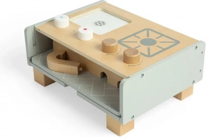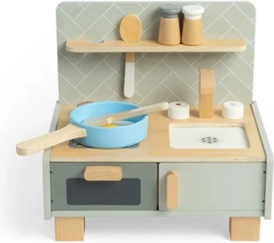 Het compacte design in zachte, neutrale kleuren past perfect in elke kinderkamer of speelruimte. Hij is gemaakt van FSC®-gecertificeerd hout en geverfd met niet-giftige verven, wat duurzame en veilige speelpret garandeert voor kinderen vanaf 3 jaar. Naast het plezier stimuleert deze kitchenette de ontwikkeling van fantasie en verbeeldingskracht, terwijl kinderen keukenrollen nadoen.