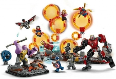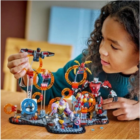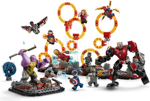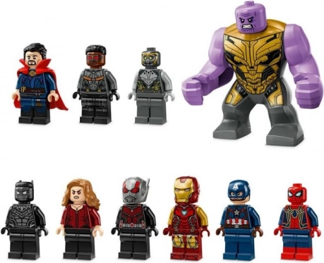 Negen gedetailleerde minifiguren, waaronder Captain America, IRON MAN, SCARLET WITCH, DOCTOR STRANGE, IRON SPIDER, BLACK PANTHER, FALCON en CHITAURI, plus een grote THanos-figuur en een beweegbare ANT-MAN-mecha, bieden onbeperkte verhaalmogelijkheden.
