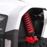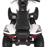 Robuuste kinderquad met 4 x 35 W aandrijving en een 12 V 10 Ah accu voor krachtige prestaties in het terrein. Voorzien van EVA schuimbanden voor stille ritten, twee achterste verstelbare schokdempers voor comfort, LED-verlichting voor en achter en een uitgebreid audiopaneel met USB/MP3/FM/Bluetooth. De veiligheid wordt verhoogd door soepele start, 2.4G afstandsbediening met STOP-knop en een veiligheidsgordel op de zitting van eco-leer.