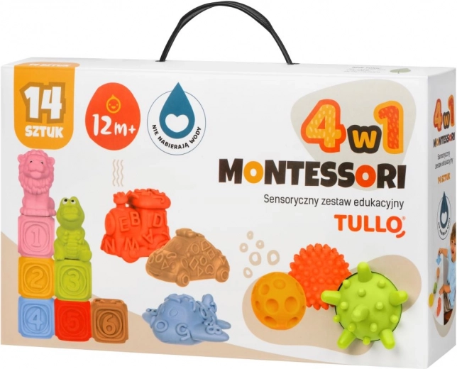 Deze sensorische speelgoedset spreekt elk kind aan door de diverse vormen en kleuren. De speeltjes hebben geen openingen, wat ze ideaal maakt voor in bad.