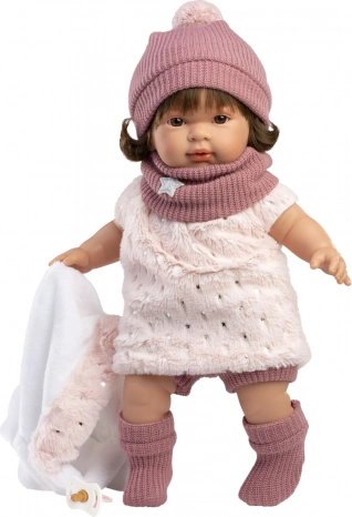 Verwijder eenvoudig de beveiliging en de pop werkt meteen! Zodra de fopspeen uit de mond wordt gehaald, begint de pop eenvoudige woorden te zeggen en realistische huiltjes te maken. Het kind leert hoe het huilen kan worden gekalmeerd met de speen. De pop is met de hand gemaakt in Spanje en wordt geleverd in een geschenkdoos, ideaal voor elke gelegenheid.