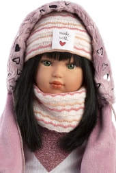 De pop Llorens Greta is een prachtige realistische pop met een zacht stoffen lichaam en haar over het hele hoofd, ideaal om mee te spelen voor kleine dames.