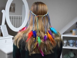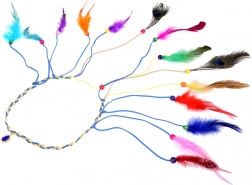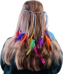 Geef je look een kleurrijke upgrade met deze prachtige boho haarband. Hij is gemaakt van lichte, kleurrijke veren in intense tinten – van turquoise en geel tot rood en groen. De combinatie met kleine houten kralen en dunne vlechtjes zorgt voor een opvallende en natuurlijke uitstraling.