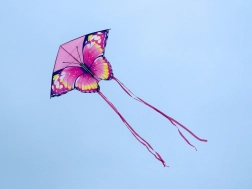 Vlinderdesign met levendige kleuren en realistische vleugels zorgt ervoor dat deze vlieger ieders aandacht trekt.