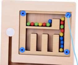 Houten magnetische puzzel voor kinderen biedt creatieve ontwikkeling van motorische vaardigheden. Gekleurde kogeltjes verplaats je met een magnetisch stokje door het doolhof.
