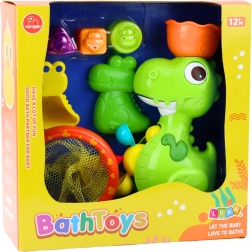 Maak kennis met de groene dinosaurus, de hoofd attractie van deze set. Hij wordt vergezeld door verschillende kleurrijke accessoires, zoals een vangnet en een set drijvende speeltjes in verschillende vormen en texturen die kinderen kunnen vangen en waar ze water overheen kunnen gieten.