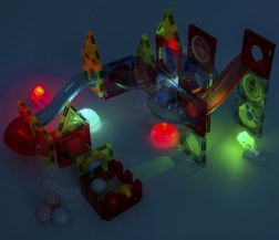 Deze magnetische bouwset biedt een uitgebreide selectie onderdelen voor het maken van originele constructies en dynamische knikkerbanen. Dankzij de lichtgevende knikkers en spotlights ontstaat een opvallend “gloeiend” parcours dat kinderen boeit en de speeltijd verlengt. Sterke magneten zorgen voor een stevige verbinding, zodat ook complexere 3D-constructies stabiel blijven staan.