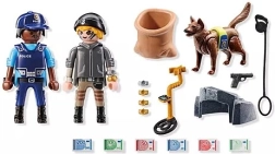Bevat figuren van een agent en een hond, een metaaldetector, accessoires.