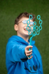 Geniet van urenlang plezier met deze unieke set om bubbels te maken! Dompel het boompje in de oplossing en met een lichte handbeweging of een zuchtje wind ontstaan eindeloos veel bubbels die in verschillende kleuren schitteren.