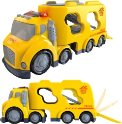 De sleepdienst uit de serie CITY TRUCK is het ideale speelgoed voor kleine autofans en fans van stedelijke speciale voertuigen. Deze gele sleepdienst vervoert kleine bouwmachines en is gemaakt van duurzaam plastic met lichteffecten en geluidseffecten die geactiveerd worden door een knop op het dak van het voertuig.