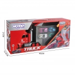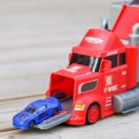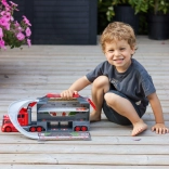 Deze multifunctionele truck in aantrekkelijk brandweerdesign dient als trekker voor vervoer en verandert uitgeklapt in een complete speelset met garage, parkeerplaatsen en een dynamische baan. Dankzij de auto-launcher starten kinderen binnen een seconde met racen.