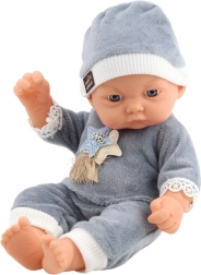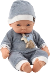 Prachtige babypop in een zachte grijze pyjama met mutsje is ideaal voor kinderen vanaf 3 jaar. De realistisch vormgegeven gelaatstrekken en zorgvuldig afgewerkte kleding zorgen voor natuurlijk spel en ondersteunen de emotionele ontwikkeling.