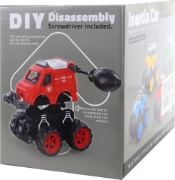 Ervaar het plezier met een schroefauto met grote vliegwielwielen. Gemaakt van stevig plastic met gerubberde wielen en geleverd met een schroevendraaier in de verpakking.