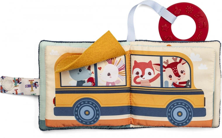 Het stoffen boekje met het thema van hondje Jules biedt je kleintje eindeloos plezier. Dankzij de klittenbandsluiting kan het gemakkelijk aan een kinderwagen of ledikant worden bevestigd, wat het hanteren en opbergen vergemakkelijkt. Het boekje stimuleert het zicht, gehoor en bevat een ingebouwd bijtspeeltje dat verlichting biedt voor kinderen tijdens het doorkomen van de eerste tandjes. Het boekje bevat geen tekst, maar moedigt met vrolijke illustraties aan tot het vertellen van eenvoudige verhaaltjes.