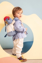 Deze zachte rugzak is speciaal ontworpen voor kinderen vanaf 12 maanden. Verstelbare schouderbanden en heupband zorgen ervoor dat de rugzak comfortabel de grootte van het kind aanpast. Hond Jules op de rugzak bewaakt trouw alle kinderschatten tijdens avonturen thuis en buiten.
