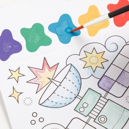Geschikt voor jonge kunstenaars; deze set stimuleert creatief denken, motoriek en concentratie. Doop eenvoudig de penseel in water en begin ruimtelijke objecten in te kleuren op vellen met een geperforeerde rand voor het gemakkelijk losscheuren van de voltooide tekening. Voldoet aan alle actuele Europese veiligheidsnormen en zorgt zo voor een veilige ervaring voor kinderen.