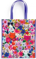 Deze stijlvolle en praktische boodschappentas is ideaal voor dagelijks gebruik. De tekeningen van katten tussen de bloemen geven je boodschappen een persoonlijke stijl.