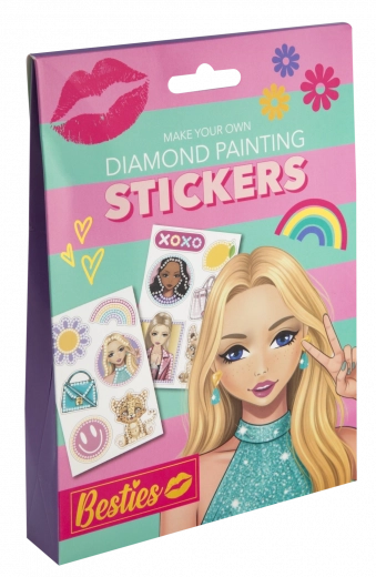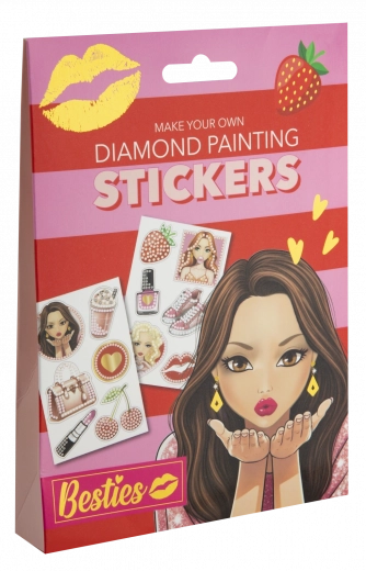 Diamond-painting set Besties, 12 stickers, 2 motieven, 880 diamantjes. Maak sprankelende stickers.