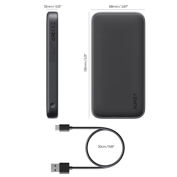 De Aukey Spark Go is een innovatieve oplossing voor al uw oplaadbehoeften. De powerbank is uitgerust met USB-C-technologie voor snel opladen, met 5 V/3 A-uitvoer compatibel met iPhone, Android en andere USB-C-apparaten.