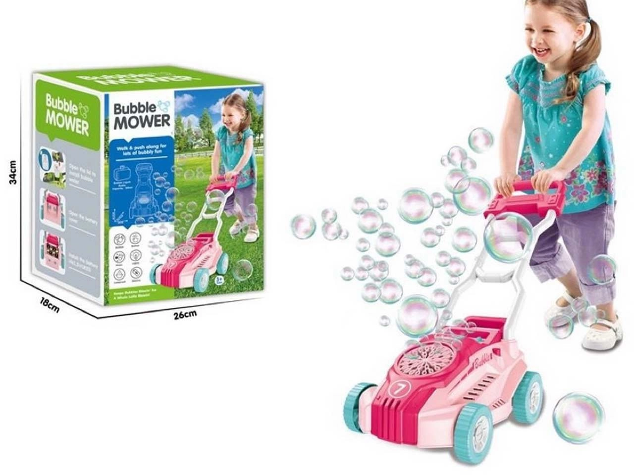 De roze bellenmaaier is gemaakt van hoogwaardig plastic dat bestand is tegen mechanische beschadiging, wat een lange levensduur van het speelgoed garandeert. Dit innovatieve speelgoed is vooral bedoeld voor buitenspeelplezier. Het geavanceerde ontwerp maakt het kinderen mogelijk om gemakkelijk en veilig bellen te maken, waardoor dit proces fascinerend wordt voor hun nieuwsgierige geesten.