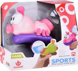 Het waterpistool trekt de aandacht met zijn sprookjesachtige uitstraling – het grappige lieveheersbeestje heeft grote ogen, schattige voelsprieten en een open mond waaruit bij het indrukken van de knop water spuit. De hele constructie is geplaatst op een comfortabele, kleurrijke handgreep die zowel als greep als trekker voor het waterspuiten dient.