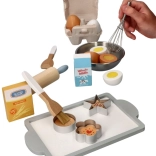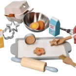 Deze rijk uitgeruste bakkersspeelset biedt kinderen een authentieke keukenervaring. Dankzij het duurzame hout en roestvrij staal zijn de onderdelen veilig, prettig in de hand en eenvoudig te onderhouden. Kinderen kunnen mixen, deeg uitrollen, uitsteken en “koekjes” versieren – net als volwassenen.