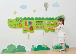 Dit grote wandactiviteitentableau in de vorm van een vrolijke krokodil is opgedeeld in meerdere panelen die kinderen uitnodigen om te ontdekken. Kleurrijke elementen wekken nieuwsgierigheid, prikkelen de zintuigen en ondersteunen zelfstandig spel. De stevige houten constructie met gladde randen is veilig en duurzaam voor dagelijks gebruik.