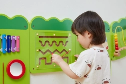 Elk paneel biedt een andere activiteit – van spelen op de xylofoon, via het draaien van tandwielen en schijven met patronen, tot het leiden van kralen en het verschuiven van onderdelen in doolhoven. Kinderen oefenen spelenderwijs coördinatie, greep, geduld en probleemoplossend vermogen. Wandmontage bespaart ruimte en maakt gelijktijdig spelen door meerdere kinderen mogelijk.