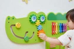 Dit leuke houten wandtableau in de vorm van een krokodil biedt kinderen vanaf 18 maanden uren aan zintuiglijk ontdekken en fijne-motoriektraining. Het bevat een xylofoon, tandwielen, een doolhof, schuif- en draaielementen en kralen op een draad, die oog-handcoördinatie, logisch denken en muzikale beleving stimuleren. Door de wandmontage bespaart het ruimte en is het ideaal voor kinderkamers, kinderopvang en speelhoeken.
