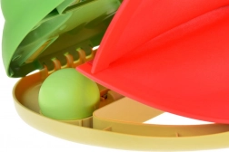 - Plaats één balletje in de bek van de kikker, alsof het op de tong ligt.