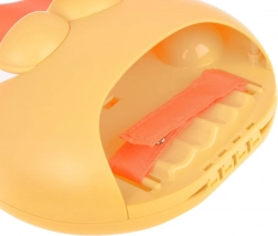 • Richt de peddel op je tegenspeler en open de bek met een snelle beweging om het balletje af te vuren.