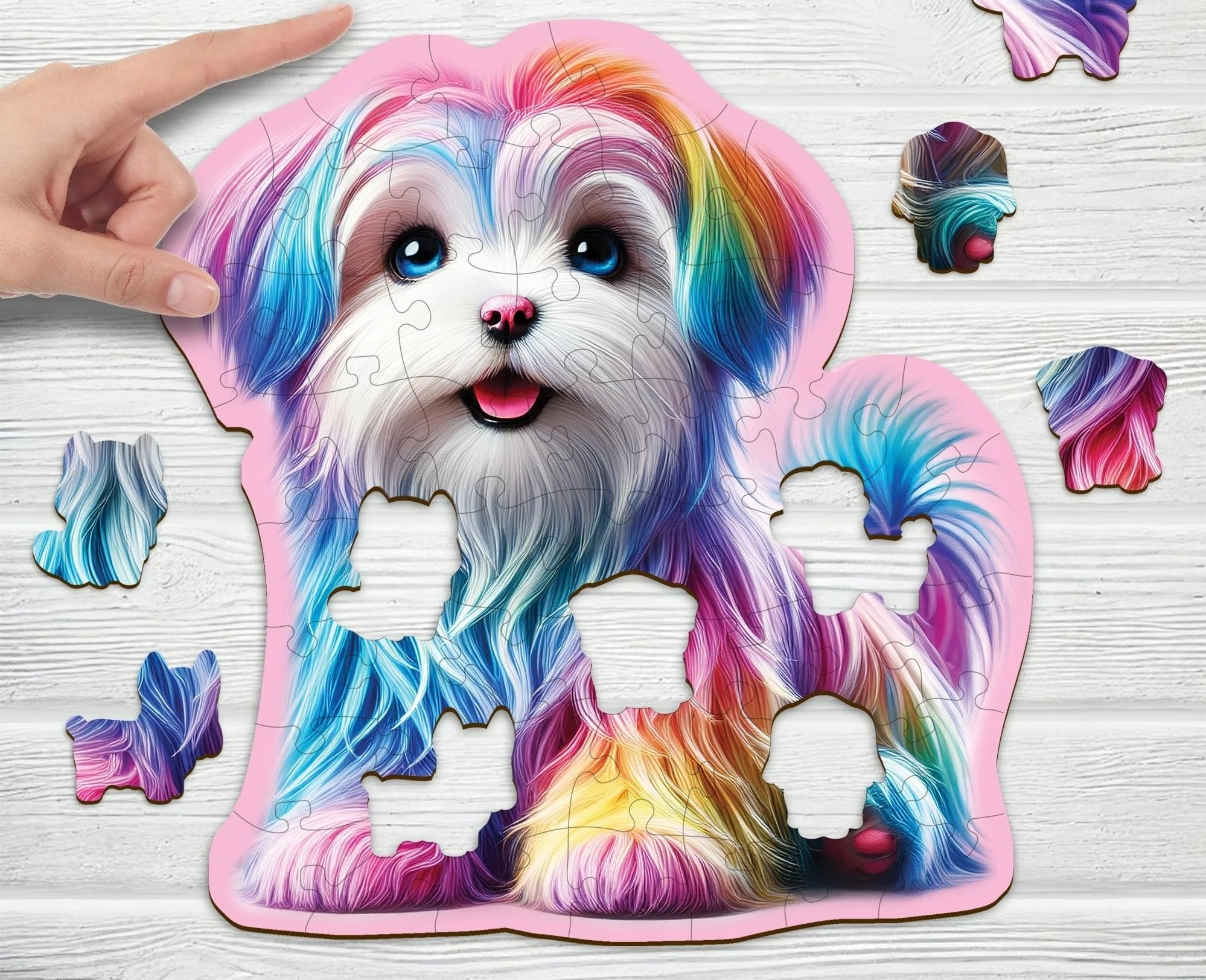 Laser-uitsneden houten puzzel WOODEN CITY is leuk en uitdagend dankzij de speciaal gevormde stukjes, waaronder dierenvormen.