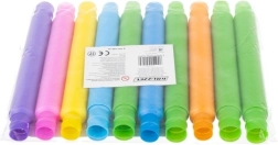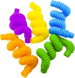Deze buisjes zijn niet alleen koppelbaar, maar ook uitrekbaar en het in- en uitklappen maakt een aangenaam geluid. Dit maakt ze perfecte speeltjes voor spanningsvermindering en het ontwikkelen van speelse creativiteit.
