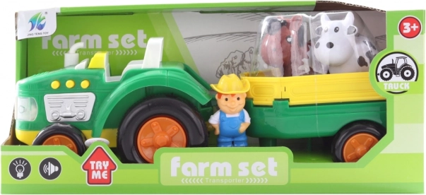 Kinderaccutrekker met aanhanger en figuurtjes, voor kinderen vanaf 3 jaar. Afmetingen 34 x 15 x 12 cm. AG13 1,5V-batterijen niet inbegrepen.