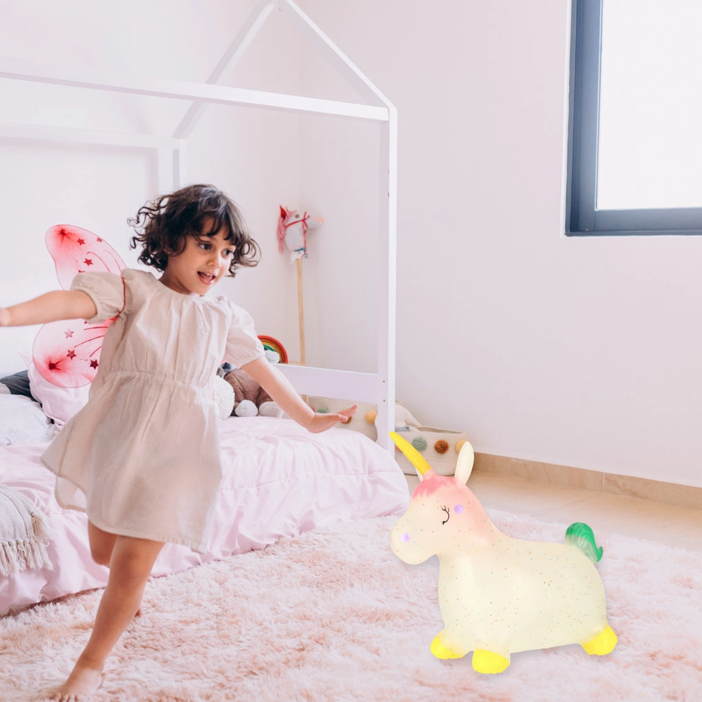 Gemaakt van veerkrachtig en duurzaam rubber; de springende eenhoorn is zacht en elastisch, met gecertificeerde veiligheid.