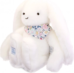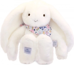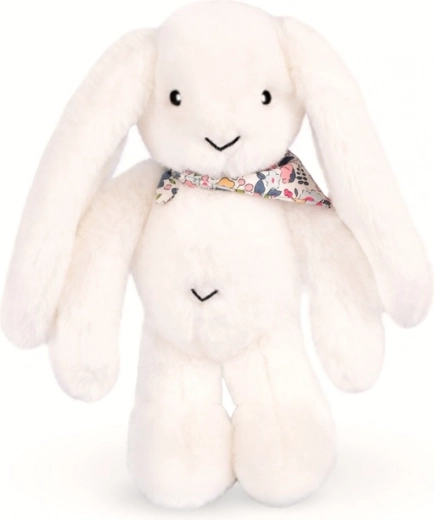 Zijdezacht wit konijntje met een bloemensjaaltje, de ideale metgezel voor een baby vanaf de geboorte. Zijn zachtheid en tederheid geven een gevoel van comfort en veiligheid.