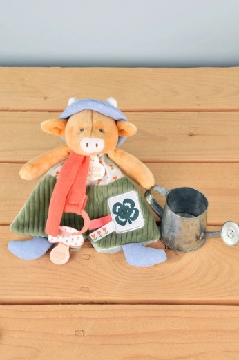 Schattige pluchen knuffel Koetje Aneth met geïntegreerde fopspeenhouder, 19 cm groot. Uit de collectie Mijn tuin, met verschillende texturen om te ontdekken en te knijpen, wat je kindje vermaakt en... Meer tonen