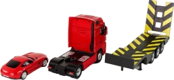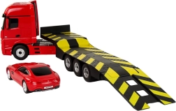 Dit geweldige model van een dieplader met een rood Mercedes‑Benz autootje is het ideale cadeau voor kleine liefhebbers van transport. Wat meteen opvalt zijn de donkere ramen en de perfect uitgewerkte details die de authenticiteit vergroten. De grote rubberen wielen zorgen voor stabiliteit tijdens het vervoeren van andere voertuigen.
