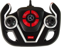 Het voertuig heeft afmetingen van 64 cm x 16 cm x 10 cm, waardoor het geschikt is voor het vervoeren van andere speeltjes. Het rode Mercedes‑autootje, onderdeel van de set, is volledig te bedienen met de afstandsbediening en heeft afmetingen van 18 cm x 5 cm x 8 cm, ideaal voor kinderhanden. Alle onderdelen, inclusief de controller met afmetingen 13 cm x 6 cm x 10 cm, zijn gemaakt van duurzaam plastic, wat langdurig speelplezier garandeert.
