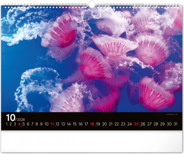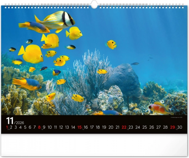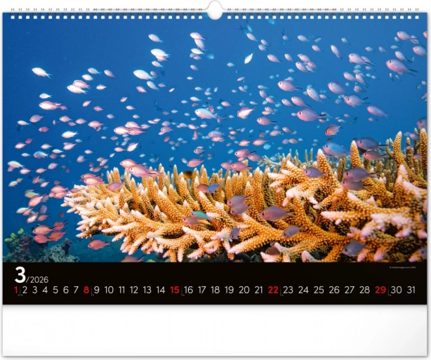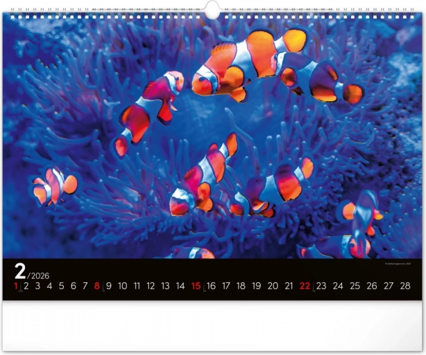 Onze wandkalender Onderwaterwereld 2026 is ideaal voor liefhebbers van natuur en oceanen. Met luxe papier en levendige foto’s is hij niet alleen een praktische hulp bij het bijhouden van de tijd, maar ook een prachtig decoratief element. Elke pagina van de kalender vangt de specifieke schoonheid van de onderwaterwereld, van kleurrijke koralen tot majestueuze zeedieren.