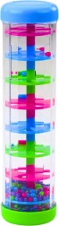 De sensorische buis met kleurrijke kralen is perfect voor de ontwikkeling van de zintuiglijke waarneming en concentratie van kinderen. Wanneer de buis wordt omgedraaid, beginnen de kralen over spiraalvormige platforms te stuiteren en geven ze een rustgevend geluid dat doet denken aan regen.