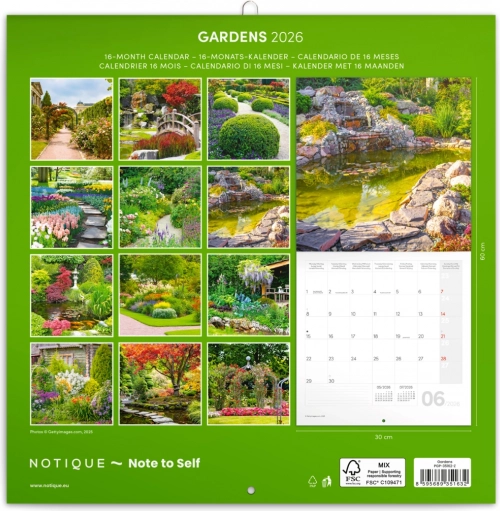 Breng sfeer in je huis met deze notitiekalender met prachtige foto’s van schitterende tuinen en praktische functies voor het hele jaar 2026.