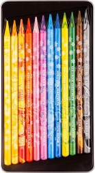 De kleurpotloden zijn verpakt in een stijlvolle metalen doos, die 12 stuks van dit unieke hulpmiddel voor alle creatievelingen bevat.