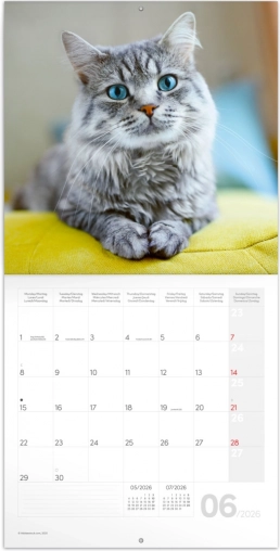 Het ontwerp van de kalender wordt verfraaid met prachtige kattenafbeeldingen die je het hele jaar door begeleiden.