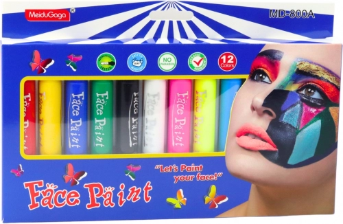 In de set vind je 12 stiften in verschillende, intense kleuren die het mogelijk maken verschillende patronen en details op het gezicht, de handen of het lichaam te creëren. Dankzij het brede kleurenpalet kunnen realistische, sprookjesachtige of abstracte composities worden gemaakt - de enige beperking is de kinderfantasie.